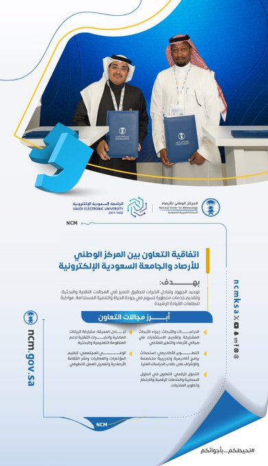 وتركز مجالات التعاون على تعزيز الجوانب البحثية والاستشارية في علوم الأرصاد والمناخ، وتطوير البرامج الأكاديمية والتدريبية المتخصصة، إضافة إلى التعاون في مجالات التحول الرقمي والحلول السحابية والابتكار، وتبادل البيانات والمعرفة لدعم الدراسات التطبيقية ورفع مستوى الوعي المجتمعي.