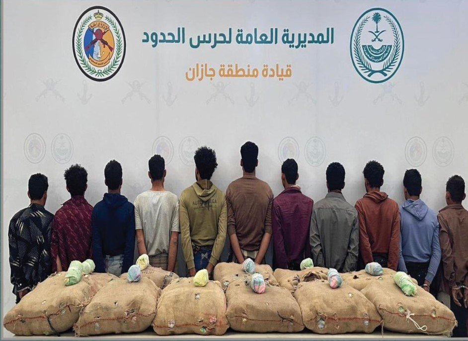 قبضت الدوريات البرية لحرس الحدود في قطاع الدائر بمنطقة جازان على (11) مخالفًا لنظام أمن الحدود من الجنسية اليمنية، لتهريبهم (198) كيلوجرامًا من نبات القات المخدر.