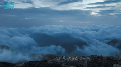 “سيدة السحاب” محافظة المندق تتلحّف جبالها بالضباب مع قطرات المطر