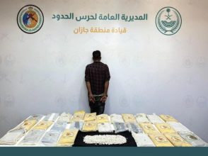 القبض على مخالف يمني لتهريبه (33) كجم من الحشيش و(3,200) قرص من الإمفيتامين المخدر #عاجل