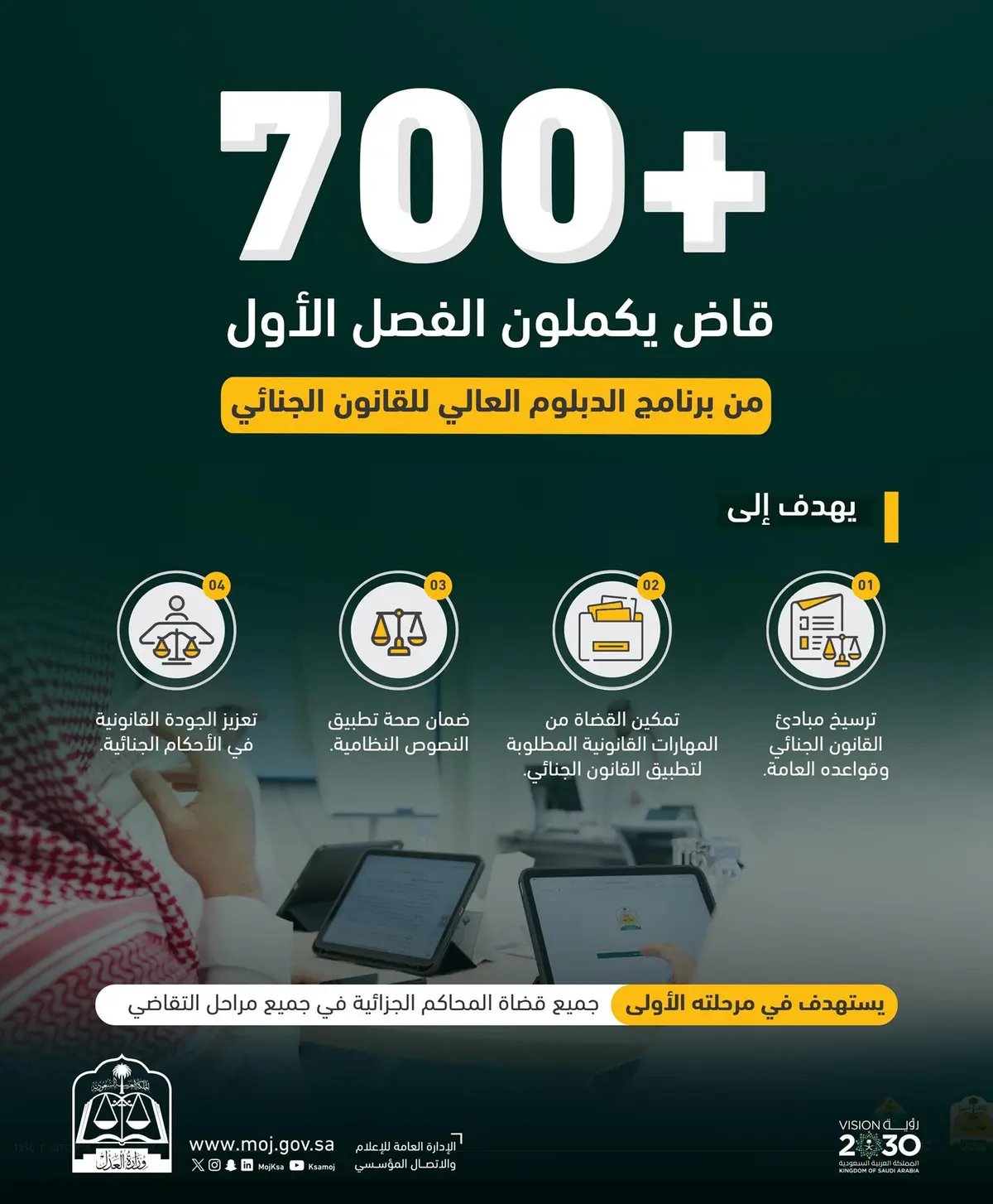 بمشاركة أكثر من 700 متدرب .. #وزارة_العدل تعلن اكتمال الفصل الأول من برنامج الدبلوم العالي للقانون الجنائي