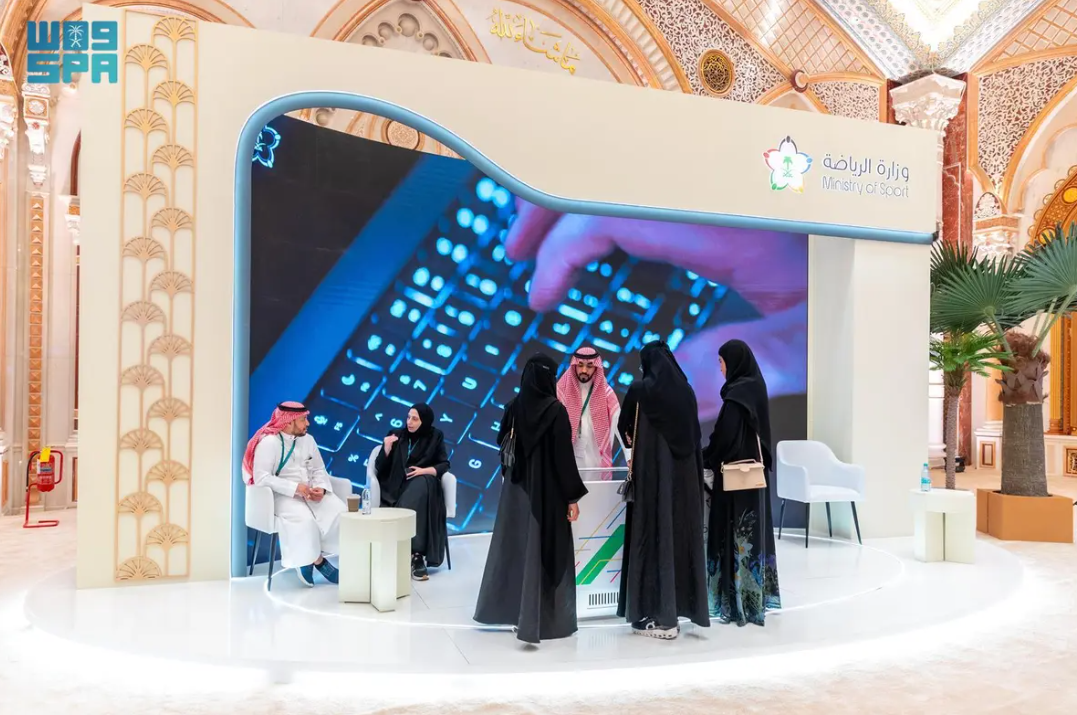 (130) جنسية، مسلطة الضوء على قصة التحول الرياضي عبر شاشات تفاعلية تضم الملعب الرقمي والمنصة الموحّدة ومبادرات المنشآت الذكية، إضافة إلى إبراز ملف الاستضافات العالمية وفي مقدمتها الترشح لاستضافة كأس العالم 2034.