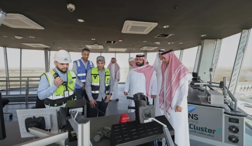 واطّلع سموه خلال الجولة، على عرضٍ تقديمي عن مراحل تنفيذ المشروع، حيث بلغت نسبة الإنجاز (92%)، فيما صُمم المطار بطاقة استيعابية تصل إلى (5.4) ملايين مسافر سنويًا، إلى جانب مرافق وخدمات حديثة جرى تصميمها وفق أعلى المعايير الدولية، بما يسهم في الارتقاء بتجربة المسافرين وتحسين كفاءة التشغيل.