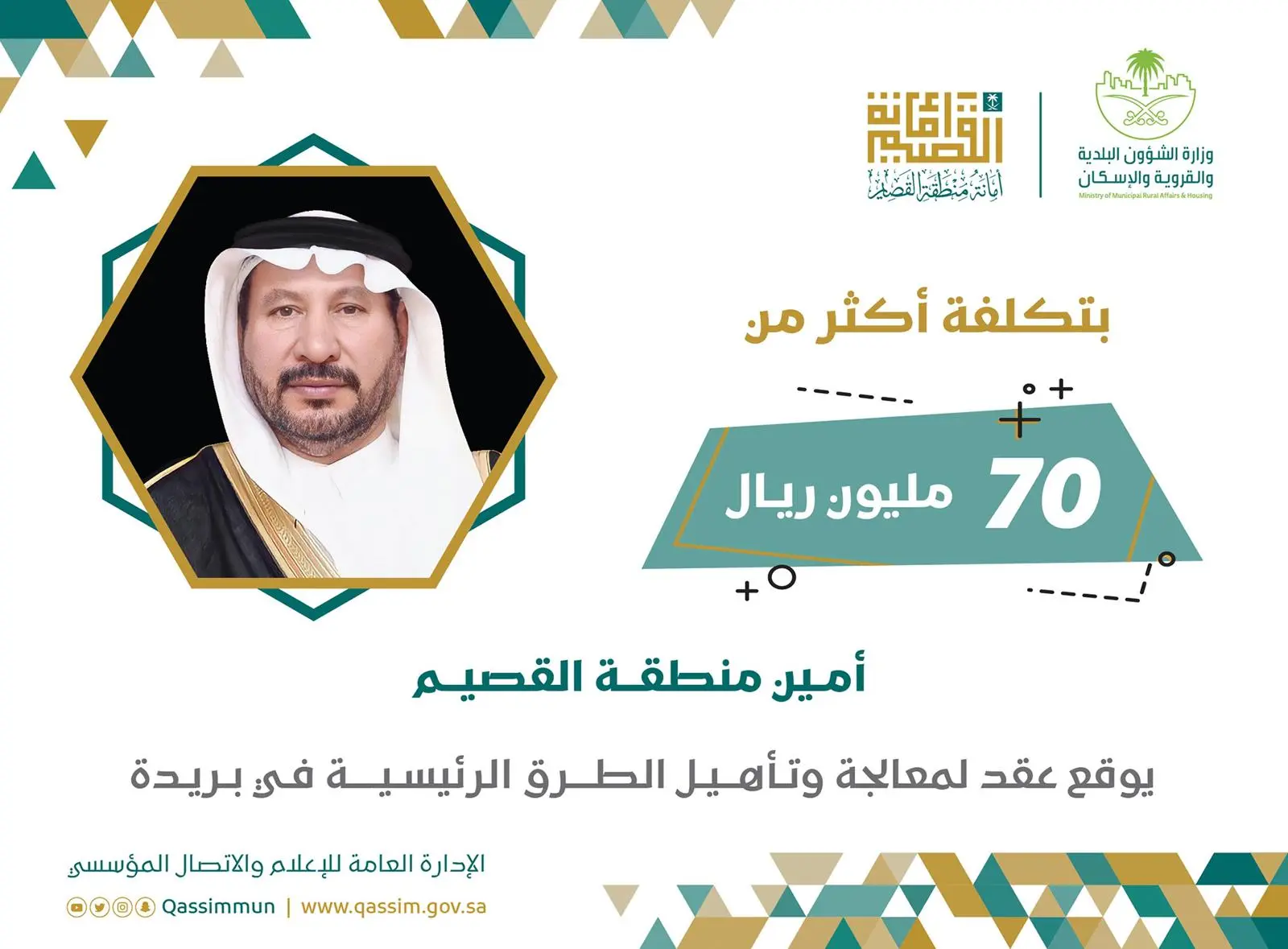 توقيع عقد مشروع معالجة وتأهيل الطرق الرئيسية بمدينة #بريدة