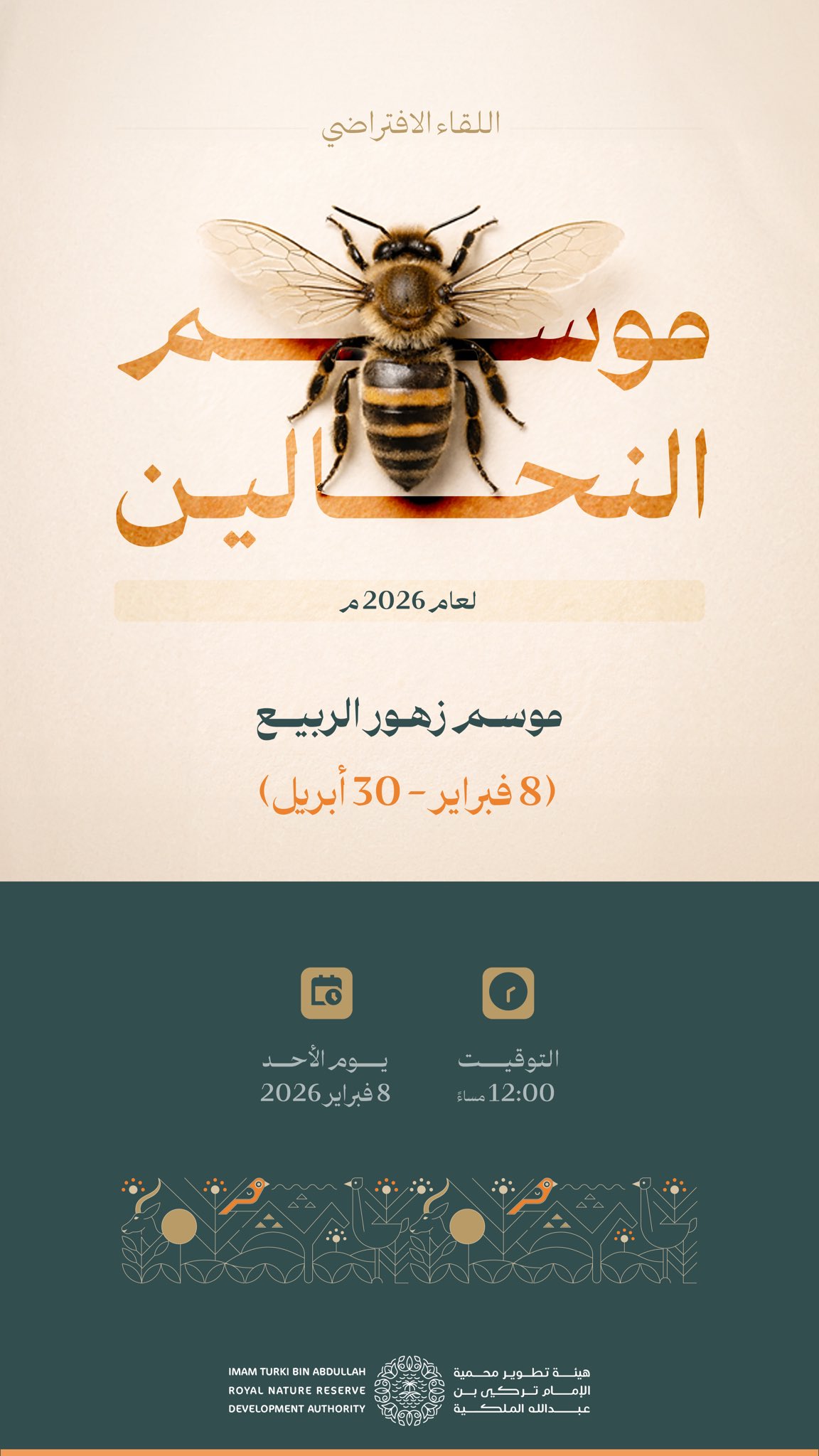 أطلقت هيئة تطوير محمية الإمام تركي بن عبدالله الملكية اليوم، موسم النحالين في نسخته الخامسة لعام 2026م، وذلك ضمن برامجها الهادفة إلى تمكين المجتمع المحلي، وتنظيم أنشطة تربية النحل داخل نطاق المحمية، بما ينسجم مع مستهدفات الحفاظ على التنوع الحيوي، وتعزيز الممارسات البيئية المستدامة، وتحقيق عوائد اقتصادية للنحالين.