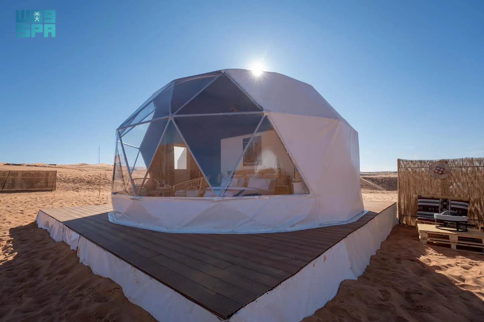 صراحة – واس: تُبرز هيئة تطوير محمية الإمام تركي بن عبدالله الملكية، تجربة “مخيم ذا ليف” كونه إحدى الوجهات السياحية البارزة ضمن برامج موسم شتاء درب زبيدة 2025، الذي يجمع فخامة المبيت وطبيعة المكان وقُبّبية المجهّزة بتصاميم حديثة وسط امتداد الرمال؛ مما يمنح الزائرين فرصة للعيش في أجواء النفود الكبير والانغماس في تفاصيله الطبيعية الفريدة.