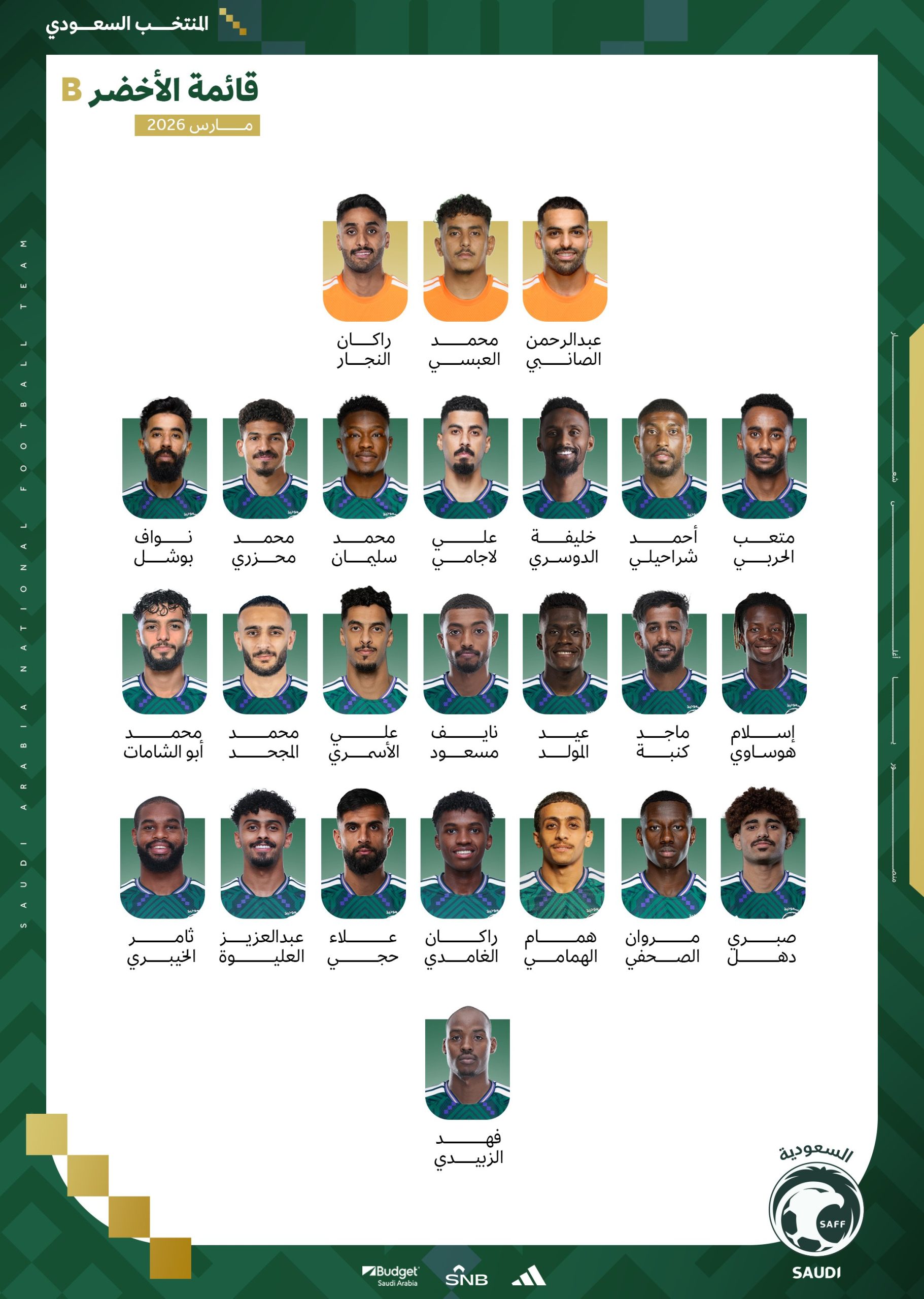 أعلن المدير الفني للمنتخب الوطني الأول إيرفي رينارد قائمة الأخضر المشاركة في المعسكر الإعدادي الذي سيُقام خلال فترة أيام FIFA الدولية لشهر مارس، وذلك ضمن المرحلة الثالثة من برنامج إعداد الأخضر لكأس العالم FIFA 2026.
