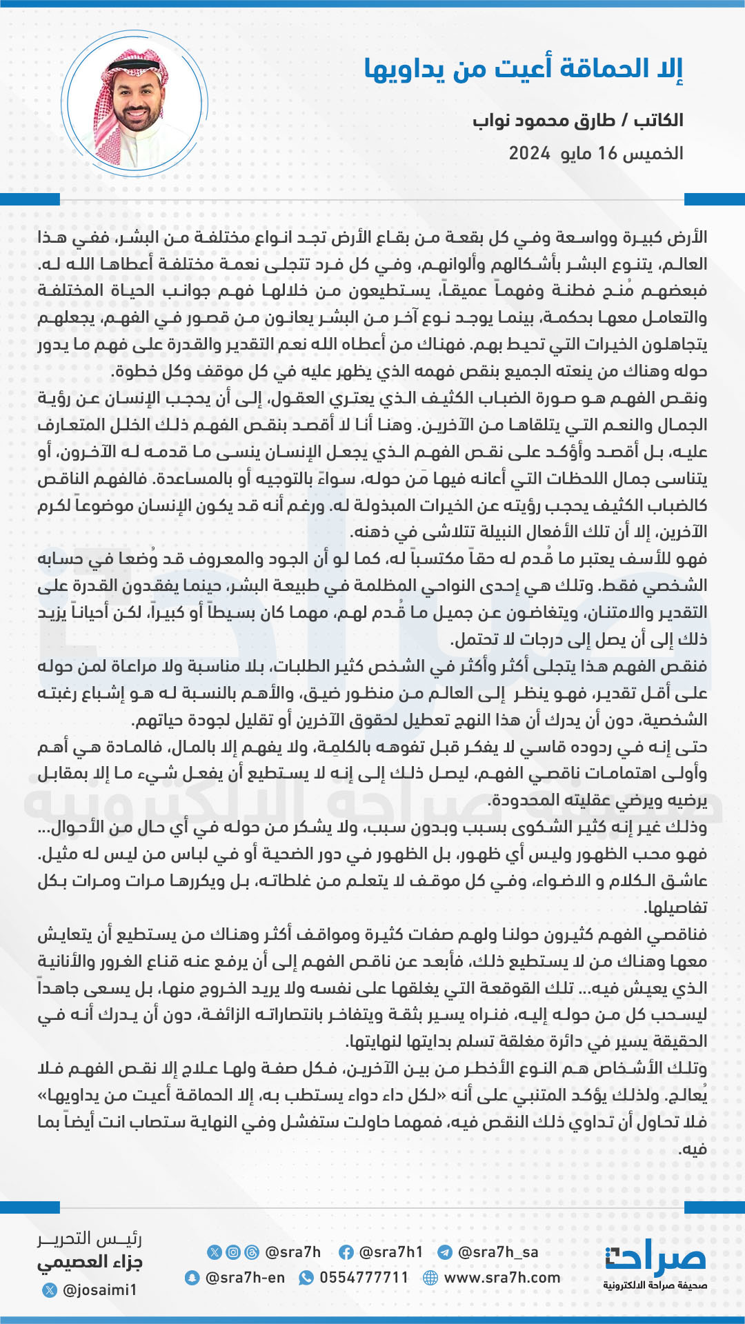الأرض كبيرة وواسعة وفي كل بقعة من بقاع الأرض تجد انواع مختلفة من البشر، ففي هذا العالم، يتنوع البشر بأشكالهم وألوانهم، وفي كل فرد تتجلى نعمة مختلفة أعطاها الله له. فبعضهم مُنح فطنة وفهماً عميقاً، يستطيعون من خلالها فهم جوانب الحياة المختلفة والتعامل معها بحكمة، بينما يوجد نوع آخر من البشر يعانون من قصور في الفهم، يجعلهم يتجاهلون الخيرات التي تحيط بهم. فهناك من أعطاه الله نعم التقدير والقدرة على فهم ما يدور حوله وهناك من ينعته الجميع بنقص فهمه الذي يظهر عليه في كل موقف وكل خطوة.