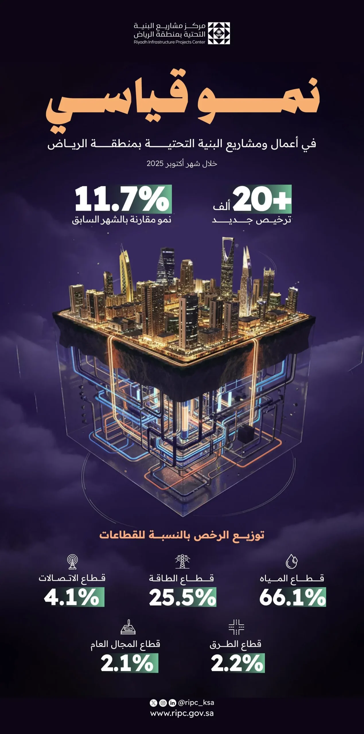 وأكد المركز أن نشر تقارير الأداء بشكل شهري يأتي ضمن ركائزه الإستراتيجية الهادفة إلى تحسين المشهد الحضري، ورفع كفاءة التنسيق بين الجهات، وتعزيز الامتثال للمعايير، وتوفير بيانات تشغيلية شفافة تمكّن الجهات من تحسين خطط التنفيذ ورفع كفاءة المشروعات، بما يسهم في دعم مستهدفات النمو والتطوير العمراني في مدينة الرياض وللاطلاع على تفاصيل التقرير يرجى الضغط على الرابط: https://report.ripc.gov.sa/share/report22.pdf.