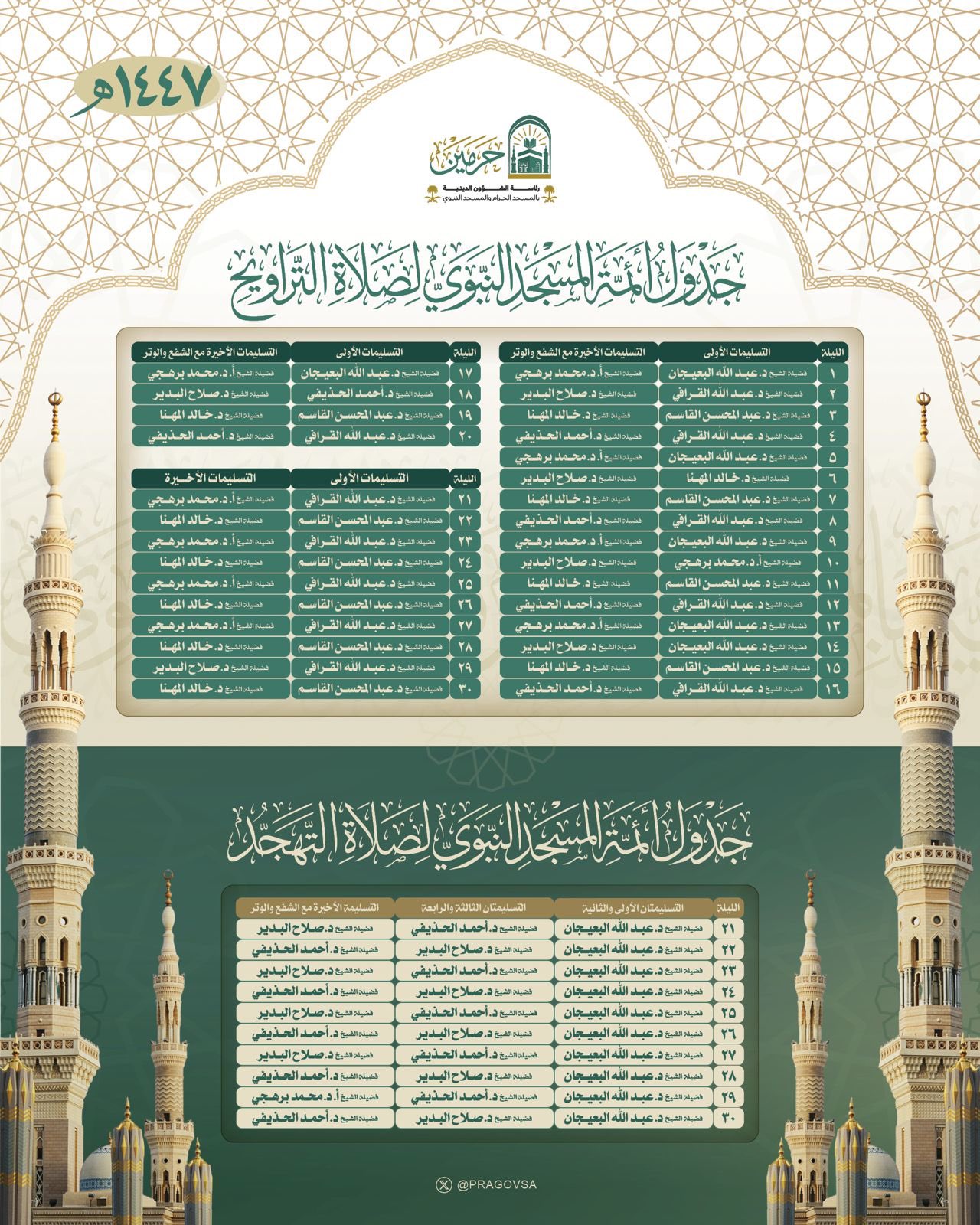 اعتماد جدول صلاتي التراويح والتهجد في الحرمين الشريفين لشهر رمضان 1447هـ