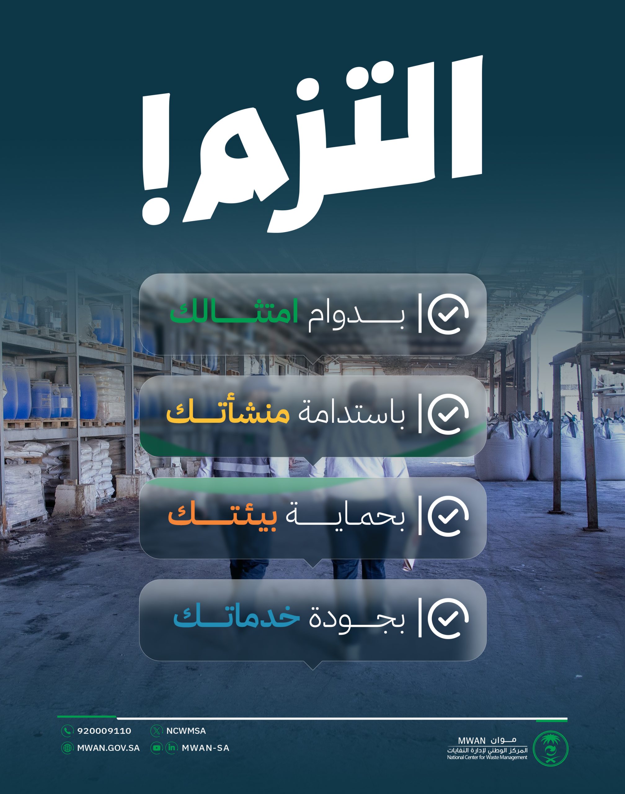 صراحة – الرياض: أطلق المركز الوطني لإدارة النفايات (موان) اليوم حملة “التزم”، كخطوة تنظيمية تهدف إلى تعزيز الامتثال بأنظمة قطاع إدارة النفايات، ورفع مستوى الوعي بأهمية تبني الممارسات السليمة في جمع النفايات والتخلص الآمن منها.
