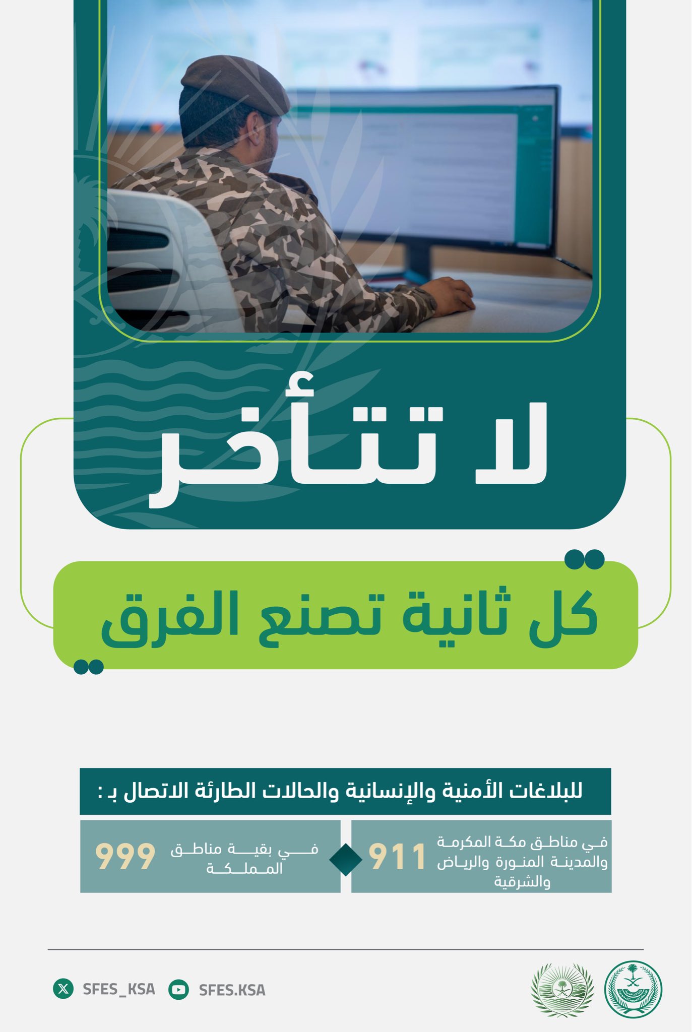 •الرقم 911 في مناطق مكة المكرمة – المدينة المنورة – الرياض – الشرقية