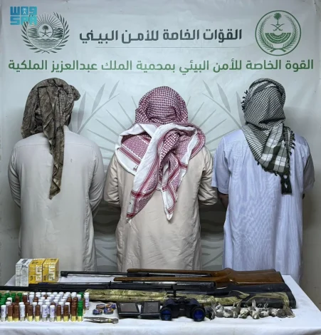 صراحة – واس: تمكنت الدوريات الميدانية للقوات الخاصة للأمن البيئي، وهي تؤدي مهامها في تنفيذ نظام البيئة في محمية الملك عبدالعزيز الملكية من القبض على (3) مواطنين وهم محمد باني المطيري وخالد برجس المطيري محمد عبدالله الجبلي، لارتكابهم مخالفة الصيد في أماكن محظور الصيد فيها، بحوزتهم بندقية شوزن، وبندقيتان هوائيتان، ومسدس هوائي، و(828) ذخيرة منوعة، و(67) كائنات فطرية مصيدة، وجرى إيقافهم واتخاذ الإجراءات النظامية بحقهم، وإحالتهم إلى الجهة المختصة.