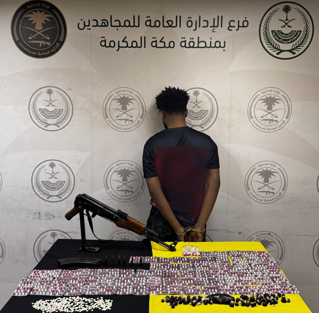 الإدارة العامة للمجاهدين بجدة تضبط مروج مخدرات مع سلاح ناري وذخيرة حية