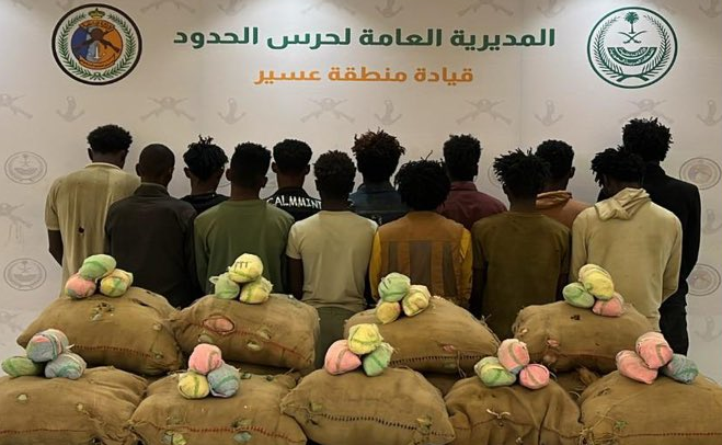 صراحة – أبهـا :قبضت الدوريات البرية لحرس الحدود في قطاع الربوعة بمنطقة عسير على (13) مخالفًا لنظام أمن الحدود من الجنسية الإثيوبية، لتهريبهم (195) كيلوجرامًا من نبات القات، وجرى استكمال الإجراءات النظامية الأولية بحقهم، وتسليمهم والمضبوطات لجهة الاختصاص.