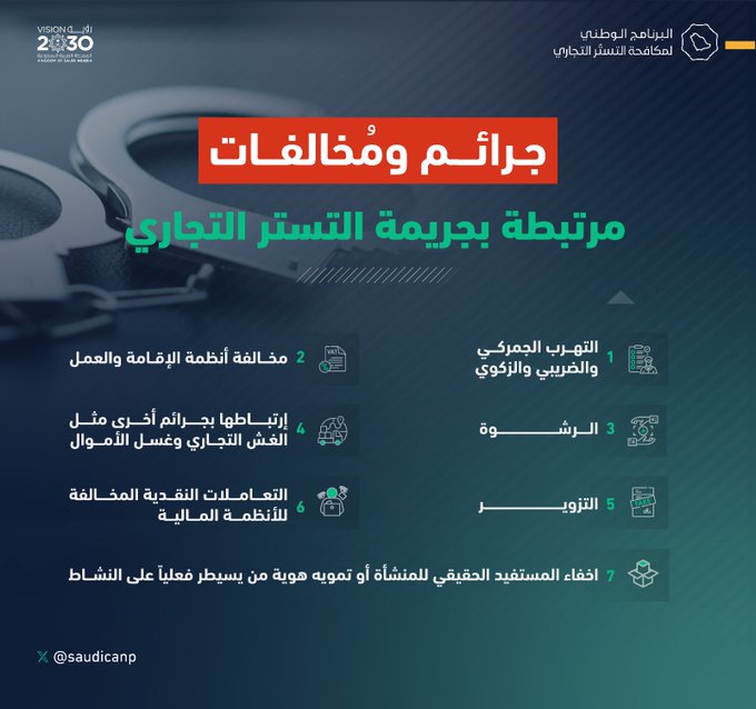 البرنامج الوطني لمكافحة #التستر_التجاري يستعرض الجرائم المرتبطة بالمخالفات
