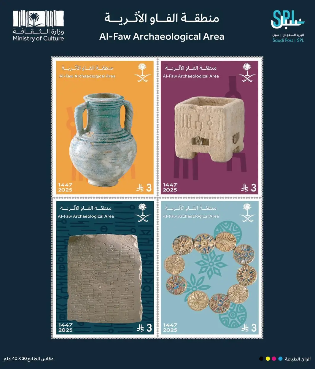 البريد السعودي يصدر طابعًا تذكاريًا لمنطقة الفاو الأثرية