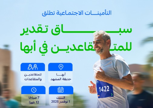 صراحة – أبها: في إطار جهودها لتعزيز الأنشطة التفاعلية والتواصل في مجتمع المتقاعدين، أعلنت المؤسسة العامة للتأمينات الاجتماعية عن تنظيم النسخة الثانية من سباق “تقدير” للمشي للمتقاعدين، يوم السبت الموافق 1 نوفمبر 2025م بمدينة أبها بمنطقة عسير، وذلك بالتعاون مع الاتحاد السعودي للرياضة للجميع.