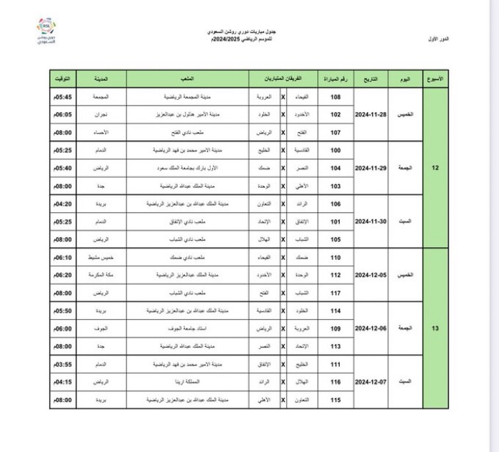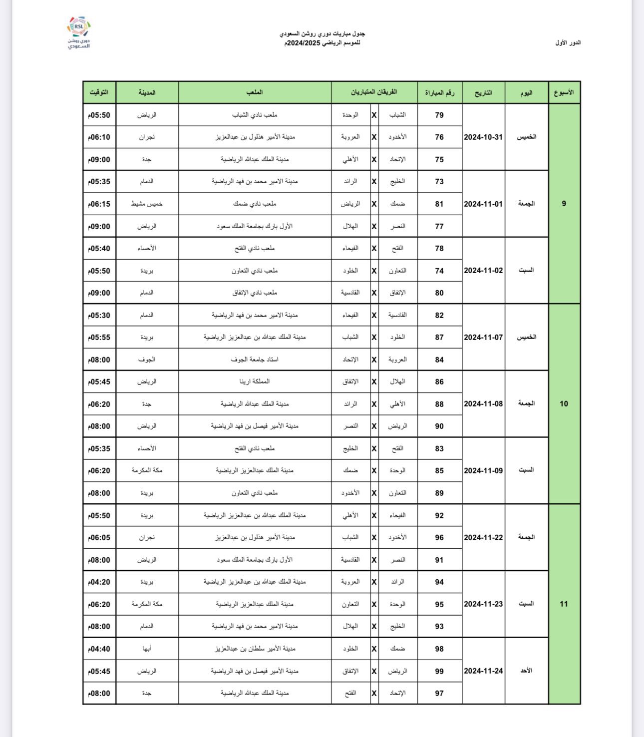 رسميا.. مواعيد مباريات ⁧‎#دوري_روشن للجولات من 9 إلى 13