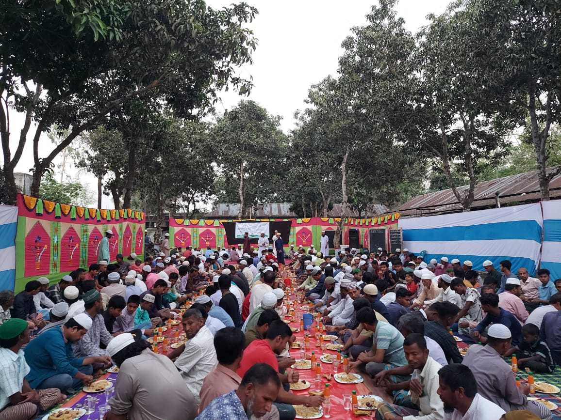 صراحة – الرياض : تواصل وزارة الشؤون الإسلامية والدعوة والإرشاد تنفيذ برنامج هدية خادم الحرمين الشريفين لتفطير الصائمين في جمهورية بنغلاديش، حيث أقامت أمس مأدبة إفطار للصائمين في مسجد الإخلاص بمدينة فيرغنج.. بحضور دعاة الوزارة وعدد من الشخصيات الإسلامية، تخللها إلقاء كلمات وعظية، ومحاضرة حول ليلة القدر وأحكامها، وقد بلغ عدد الحضور للمأدبة أكثر من (400) صائم وصائمة.