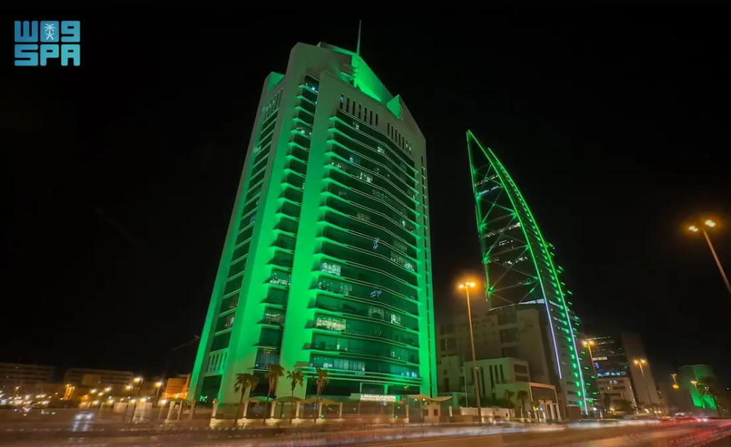 “الشؤون الإسلامية” تتفاعل مع اليوم الوطني الـ95.. وتتزيّن مبانيها باللون الأخضر