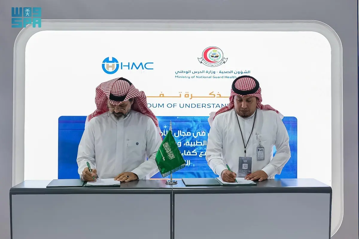 صراحة – الرياض : وقّعت الشؤون الصحية بوزارة الحرس الوطني عددًا من مذكرات التفاهم على هامش ملتقى الصحة العالمي مع شركة HMC Group، وشركة Snibe Diagnostic،