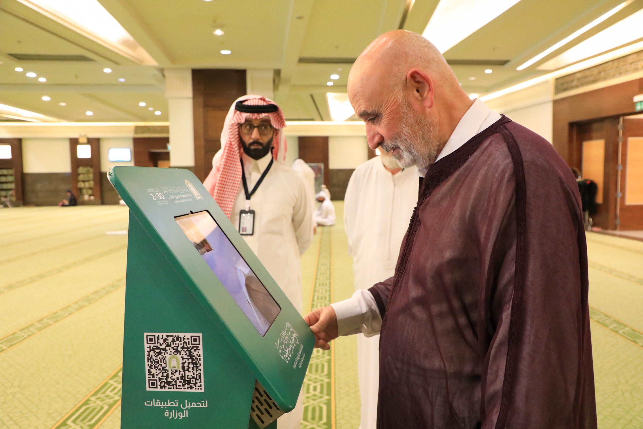 وتتيح هذه الخدمة المتجولة في مصليات الفنادق المجاورة للمسجد الحرام التواصل المباشر عن طريق الاتصال المرئي بين السائل وفريق من المشايخ والدعاة؛ للإجابة عن استفساراتهم المتعلقة بنسك العمرة وأحكام شهر رمضان وغيرها بكل يُسر وسهولة عن بعد وبشكل ذكي وبعدة لغات عالمية، حيث تسعى الوزارة من خلال هذه الخدمة إلى تطبيق أفضل الممارسات التقنية العالمية في إطار مواكبة الوزارة لرؤية المملكة 2030.