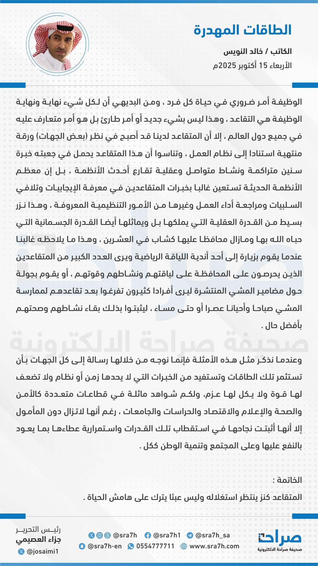 المتقاعد كنز ينتظر استغلاله وليس عبئا يترك على هامش الحياة .
