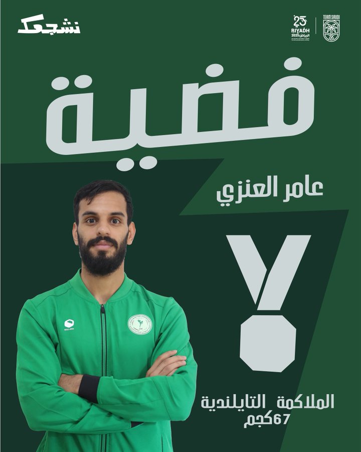 أحرز لاعب فريق السعودية عامر العنزي فضّية الملاكمة التايلندية – وزن 65-70 كجم عقب خسارته من لاعب منتخب الإمارات محمد مرادي،