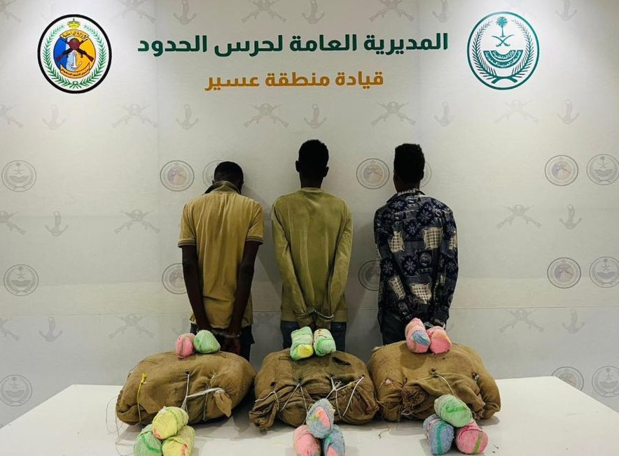 قبضت الدوريات البرية لحرس الحدود في قطاع الربوعة بمنطقة عسير على (3) مخالفين لنظام أمن الحدود من الجنسية الإثيوبية، لتهريبهم (63) كيلوجرامًا من نبات القات المخدر.