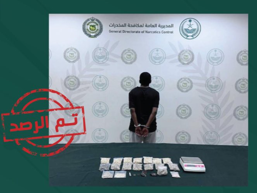 قبضت المديرية العامة لمكافحة المخدرات على مواطن بمنطقة الرياض، لترويجه مادة الحشيش المخدر و(13,840) قرصًا من مادة الإمفيتامين المخدر.