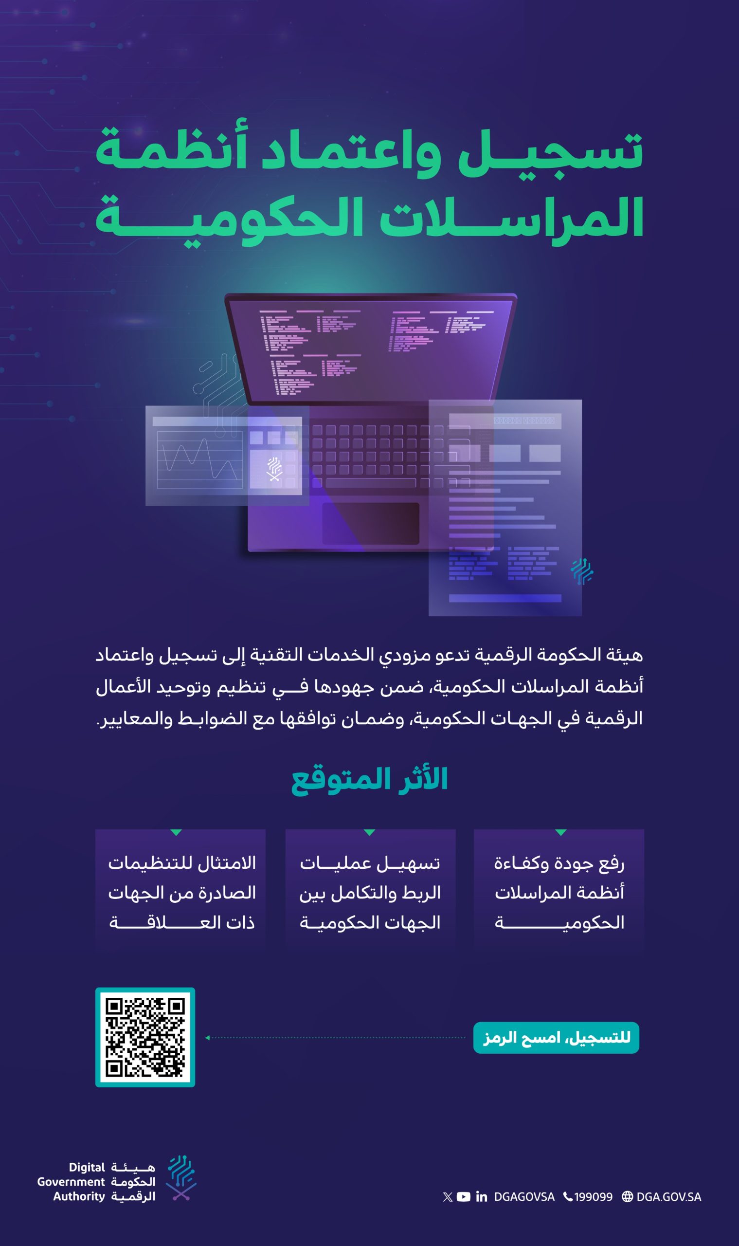 اعتبارًا من اليوم وحتى 21 أغسطس .. “الحكومة الرقمية” تدعو مزوّدي الخدمات التقنية لتسجيل واعتماد أنظمة المراسلات الحكومية