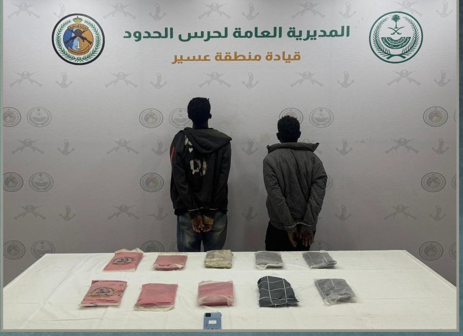 قبضت الدوريات البرية لحرس الحدود في قطاع ظهران الجنوب بمنطقة عسير على مخالفين لنظام أمن الحدود من الجنسية الإثيوبية، لتهريبهما (11) كيلوجرامًا من مادة الحشيش المخدر.