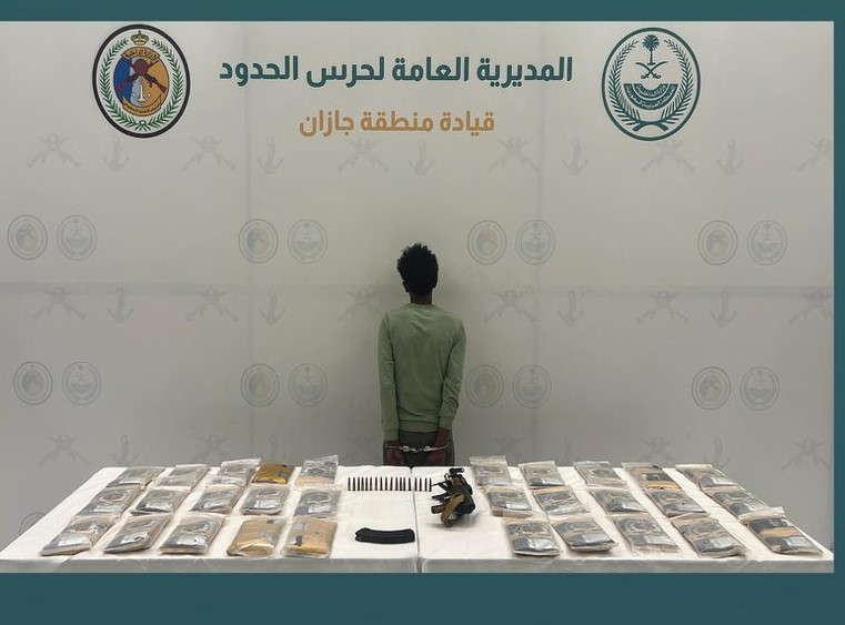 صراحة – جازان: قبضت الدوريات البرية لحرس الحدود في قطاع الدائر بمنطقة جازان على مخالف لنظام أمن الحدود من الجنسية الإثيوبية، لتهريبه 33 كيلوجرامًا من مادة الحشيش المخدر، واستكملت الإجراءات النظامية الأولية بحقه، وسُلم والمضبوطات لجهة الاختصاص.