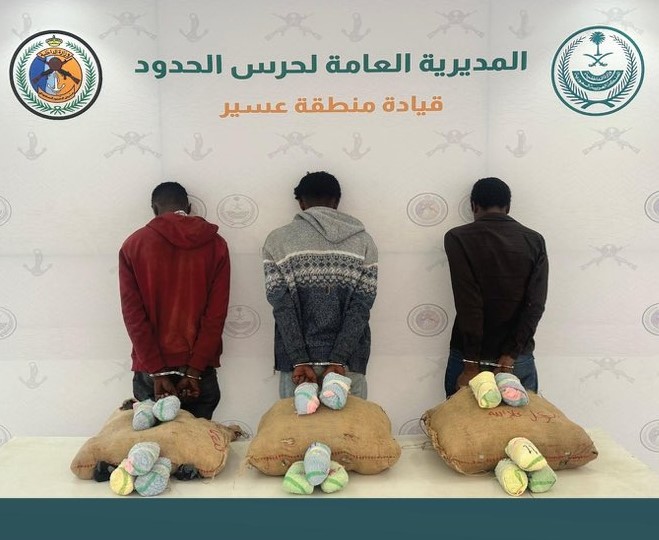 صراحة – أبها: قبضت الدوريات البرية لحرس الحدود في قطاع الربوعة بمنطقة عسير على (3) مخالفين لنظام أمن الحدود من الجنسية الإثيوبية، لتهريبهم (60) كيلوجرامًا من نبات القات المخدر، واستكملت الإجراءات النظامية الأولية بحقهم، وسُلموا والمضبوطات لجهة الاختصاص.