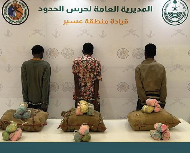 صراحة – أبها: قبضت الدوريات البرية لحرس الحدود في قطاع الربوعة بمنطقة عسير على (3) مخالفين لنظام أمن الحدود من الجنسية الإثيوبية، لتهريبهم (45) كيلوجرامًا من نبات القات المخدر، واستكملت بحقهم الإجراءات النظامية الأولية، وتسليمهم والمضبوطات لجهة الاختصاص.