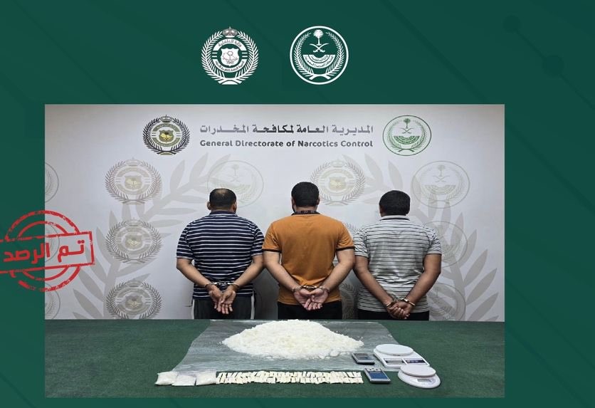 ألقت المديرية العامة لمكافحة المخدرات القبض على ثلاثة مقيمين من الجنسية الباكستانية في جدة، وذلك بعد ضبطهم أثناء محاولتهم ترويج (6) كيلوجرامات من مادة الميثامفيتامين المخدر (الشبو).
