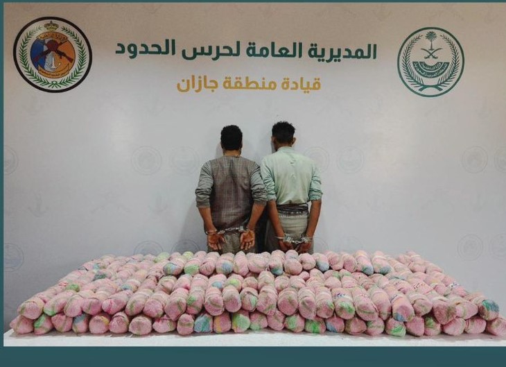 كما قبضت قبضت الدوريات البرية لحرس الحدود في قطاع الدائر بمنطقة جازان على مخالفين لنظام أمن الحدود من الجنسية اليمنية، لتهريبهما (140) كيلوجرامًا من نبات القات المخدر.