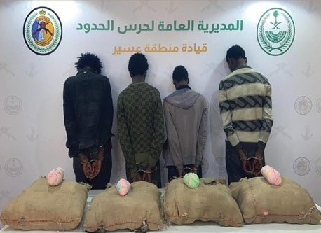 تمكنت الدوريات البرية لحرس الحدود في قطاع الربوعة بمنطقة عسير من القبض على (4) مخالفين لنظام أمن الحدود من الجنسية الاثيوبية، لتهريبهم (100) كيلوجرام من نبات القات المخدر.