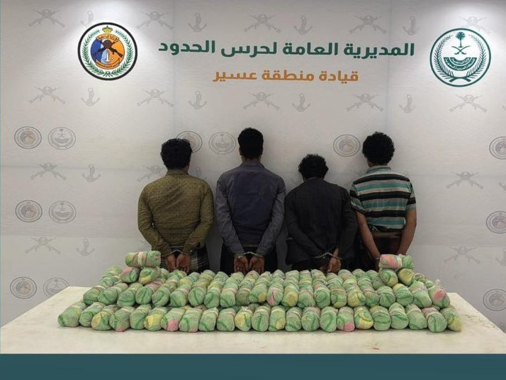 تمكنت قوات حرس الحدود في منطقة عسير من القبض على 4 مخالفين لنظام أمن الحدود من الجنسية اليمنية، لتهريبهم 90 كيلوغراماً من نبات القات المخدر.