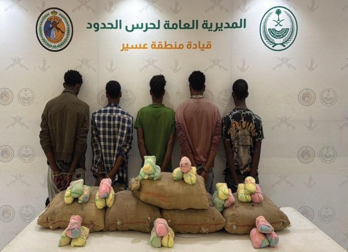 تمكنت الدوريات البرية لحرس الحدود في قطاع الربوعة بمنطقة عسير من القبض على (5) مخالفين لنظام أمن الحدود من الجنسية الإثيوبية، لتهريبهم (100) كيلوجرام من نبات القات المخدر.