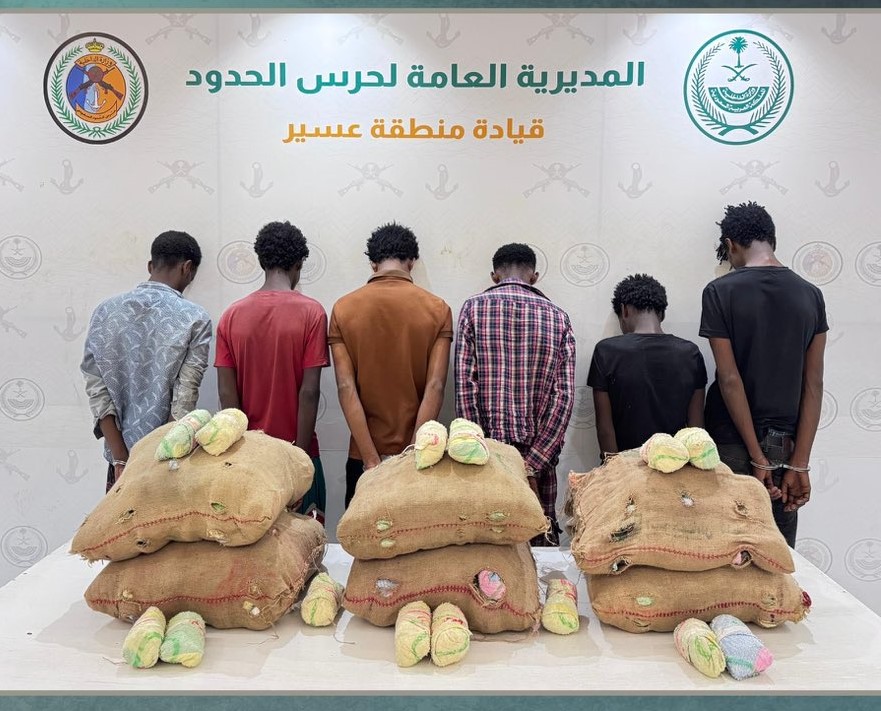 قبضت الدوريات البرية لحرس الحدود في قطاع الربوعة بمنطقة عسير على (6) مخالفين لنظام أمن الحدود من الجنسية الإثيوبية، لتهريبهم (120) كيلوجرامًا من نبات القات المخدر.