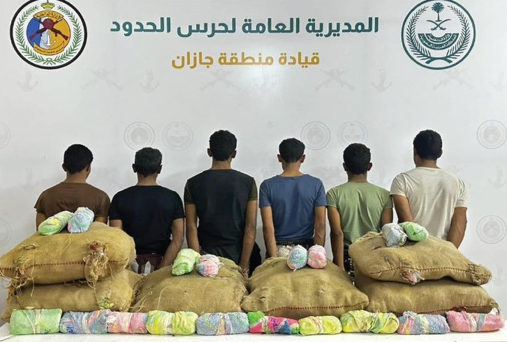 تمكنت الدوريات البرية لحرس الحدود في قطاع العارضة بمنطقة جازان من القبض على ستة مخالفين لنظام أمن الحدود من الجنسية اليمنية، لتهريبهم (90) كيلوجرامًا من نبات القات المخدر.