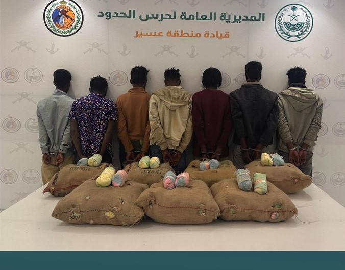 القبض على (7) مخالفين من الجنسية الإثيوبية لتهريبهم (120) كجم من القات المخدر #عاجل