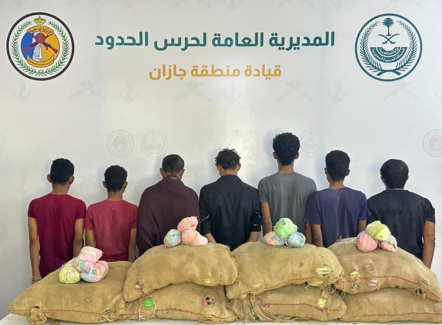 قبضت الدوريات البرية لحرس الحدود في قطاع العارضة بمنطقة جازان على (7) مخالفين لنظام أمن الحدود من الجنسية اليمنية، لتهريبهم (105) كيلوجرامات من نبات القات المخدر، واستكملت الإجراءات النظامية الأولية بحقهما، وسُلما والمضبوطات لجهة الاختصاص.