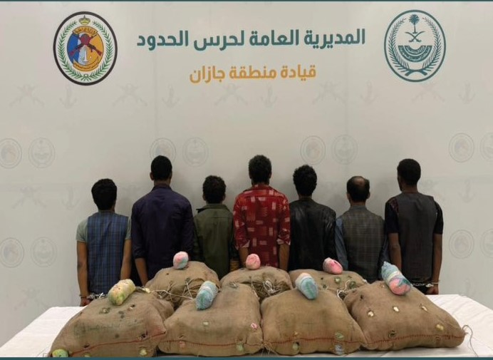 تمكّنت القوات البرية لحرس الحدود بقطاع الدائر بمنطقة جازان من القبض على سبعة مخالفين لنظام أمن الحدود من الجنسيتين اليمنية والإثيوبية، لتهريبهم 140 كيلوجرامًا من نبات القات المخدر.