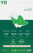 المركز الوطني للعمليات الأمنية يتلقى (93,331) بلاغًا .. والرياض الاكثر تقديماً للبلاغات الأمنية
