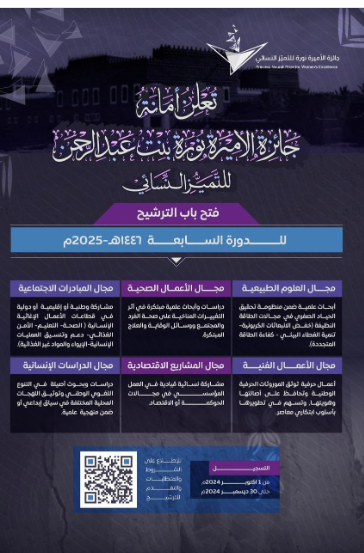 فتح باب الترشح في #جائزة_الأميرة_نورة_للتميز_النسائي في دورتها السابعة