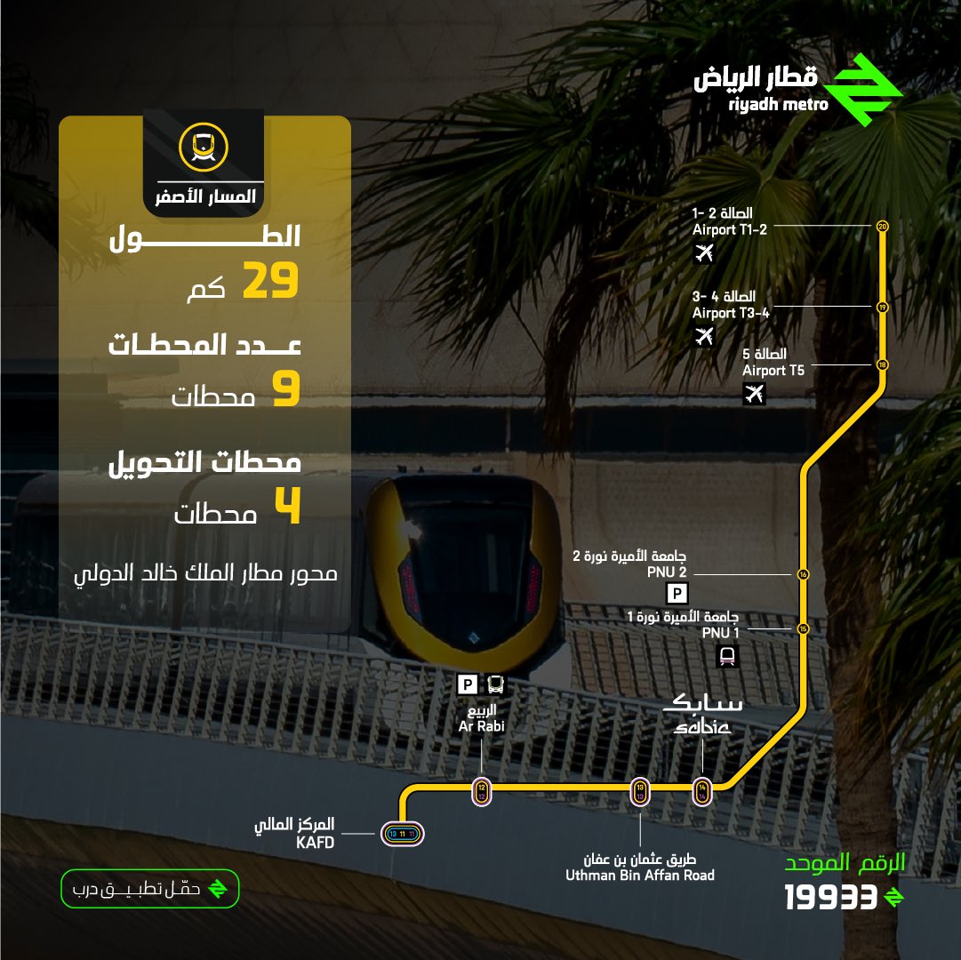 المسار الأصفر في #قطار_الرياض رابط استراتيجي جديد بمحور #مطار_الملك_خالد