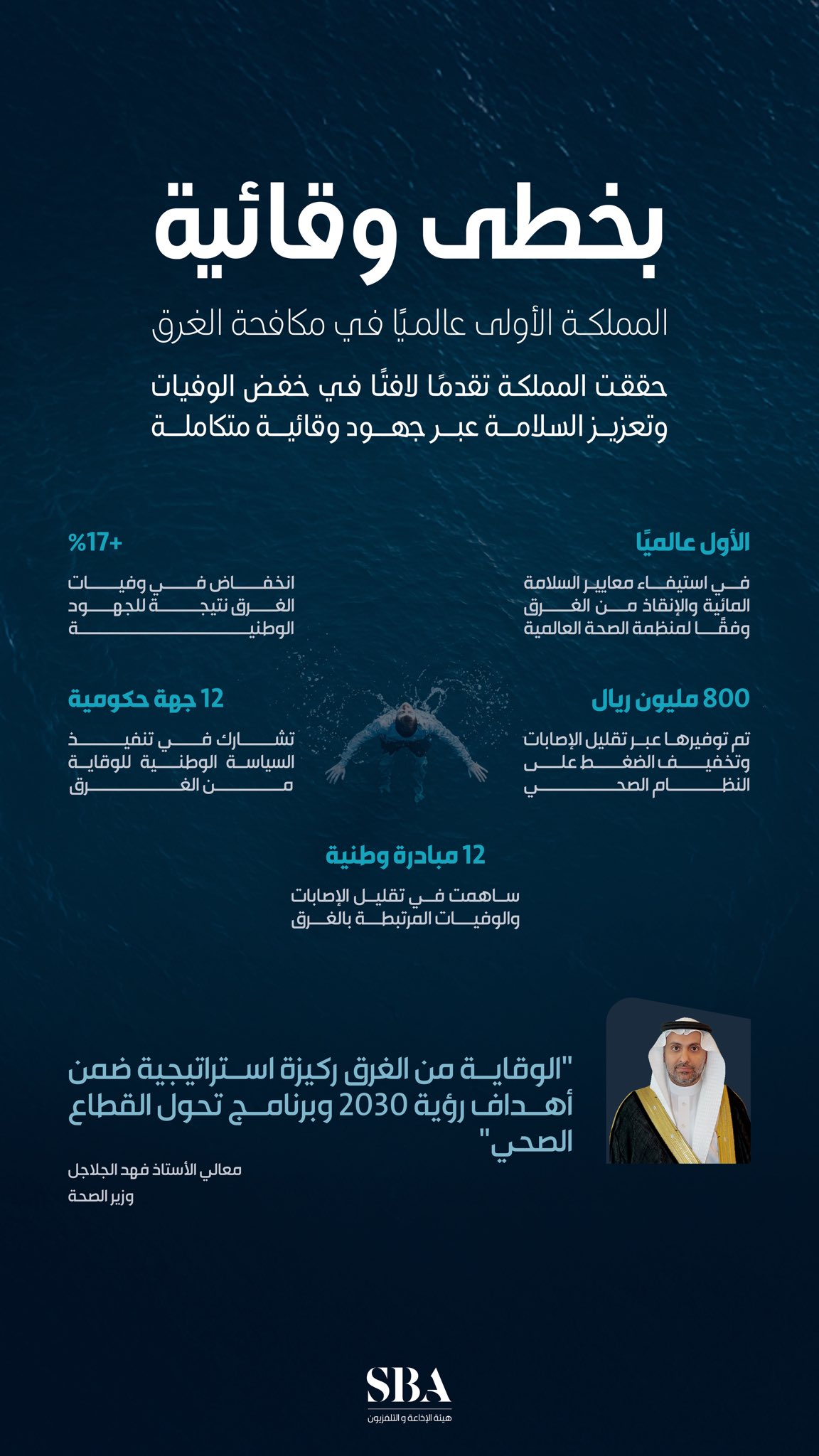 وأكد معالي وزير الصحة فهد الجلاجل أن الوقاية من الغرق تُعد “ركيزة استراتيجية ضمن أهداف رؤية المملكة 2030 وبرنامج تحول القطاع الصحي”.